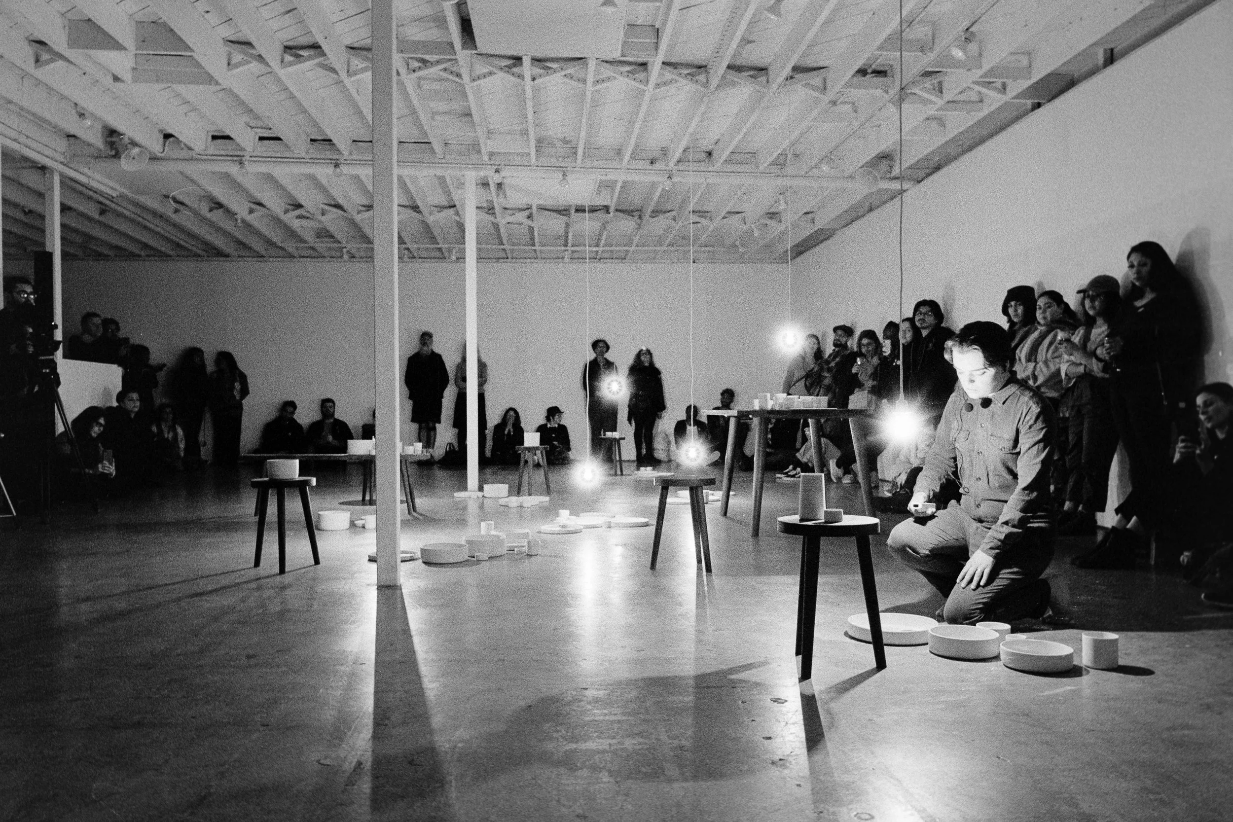 score for the near future is a collaboration with sculptor Jimena Sarno that includes vocal performance and composition by Molly combined with custom made walnut furniture, hand thrown and hand inscribed porcelain wares, light fixtures and lightbulbs, horn speakers, amplifiers, custom randomizing sound program. The composition is played back in the space in intervals, re-articulating harmony and dissonance into new formations. The piece considers the friction of dissonance, re-interpretation and re-composition as generative of imagined possibilities and insists on the re-evaluation of the idea of a tangible future and on the local, domestic and intimate circles of influence and mutual care that each of us are capable of accessing within our reach to alter established structures.
